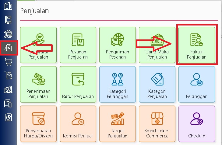 - Buka menu Penjualan | Faktur Penjualan dan klik Data Baru.