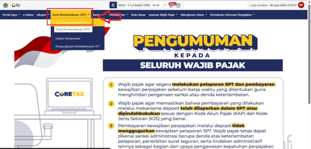 Akses Coretax melalui situs resmi DJP, kemudian login menggunakan akun pajak perusahaan.