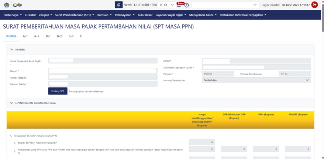 - Scroll ke bagian bawah formulir SPT Masa PPN.