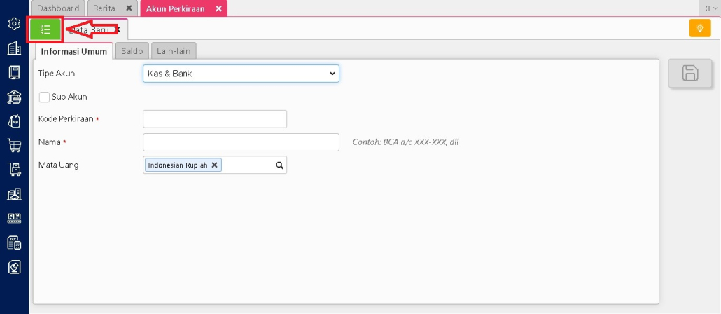 - Ini adalah nomor unik untuk setiap transaksi pencatatan beban. Nomor ini akan otomatis terisi sesuai dengan pengaturan penomoran yang sudah Anda atur sebelumnya.