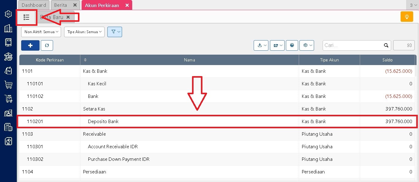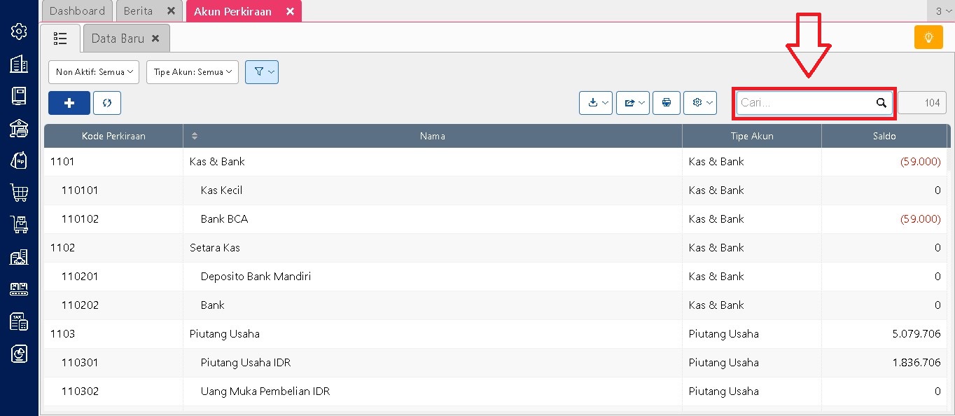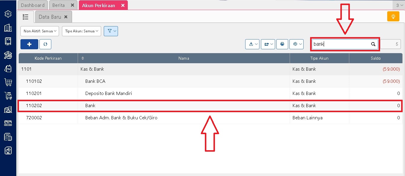 - Di bagian ini, Anda perlu memilih akun hutang yang akan digunakan untuk mencatat beban tersebut. Pastikan akun yang dipilih adalah akun dengan tipe Kewajiban Jangka Pendek. Anda bisa mencari akunnya berdasarkan nomor akun atau nama akun.