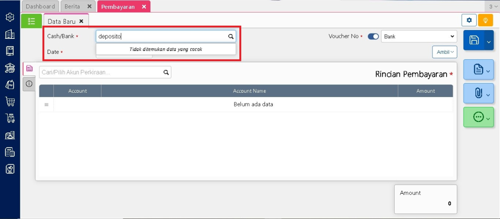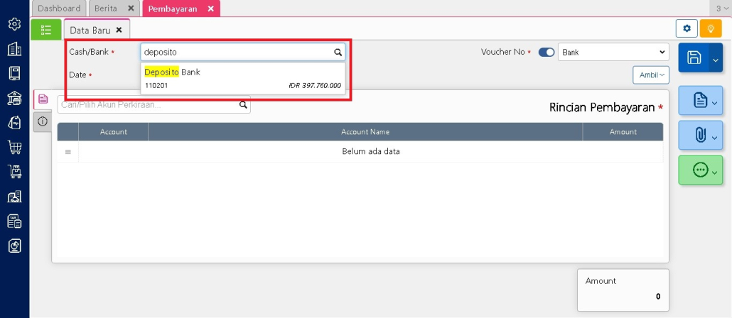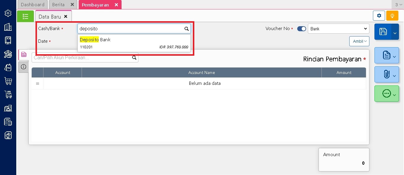 - Anda juga bisa langsung melunasi transaksi beban dari sini. Sistem akan membawa Anda ke formulir Pembayaran di menu Kas&Bank untuk menyelesaikan prosesnya.