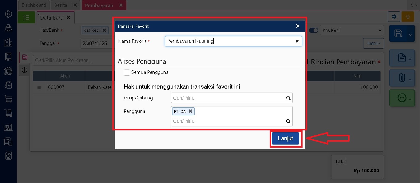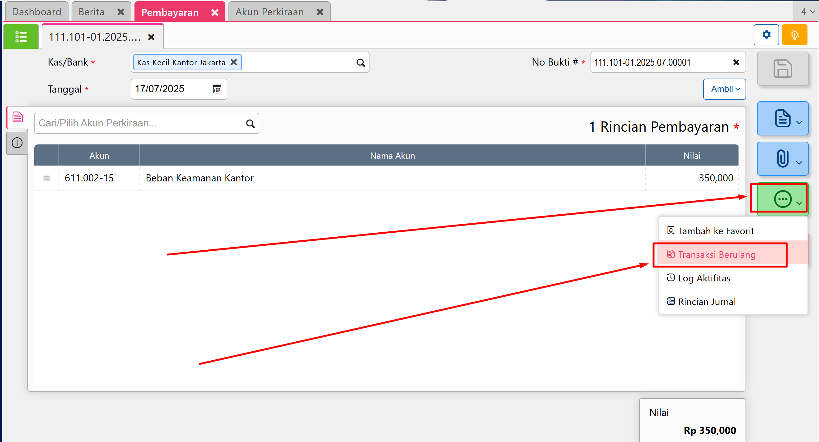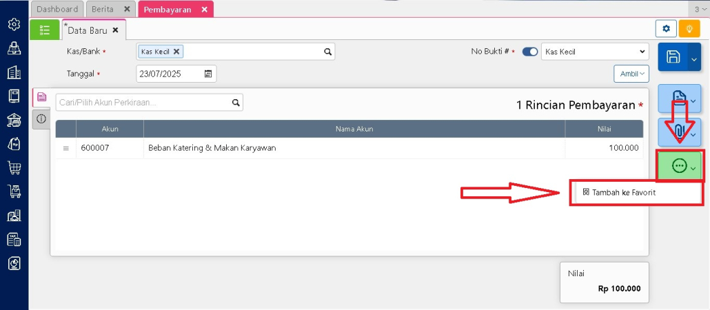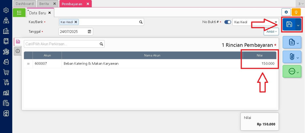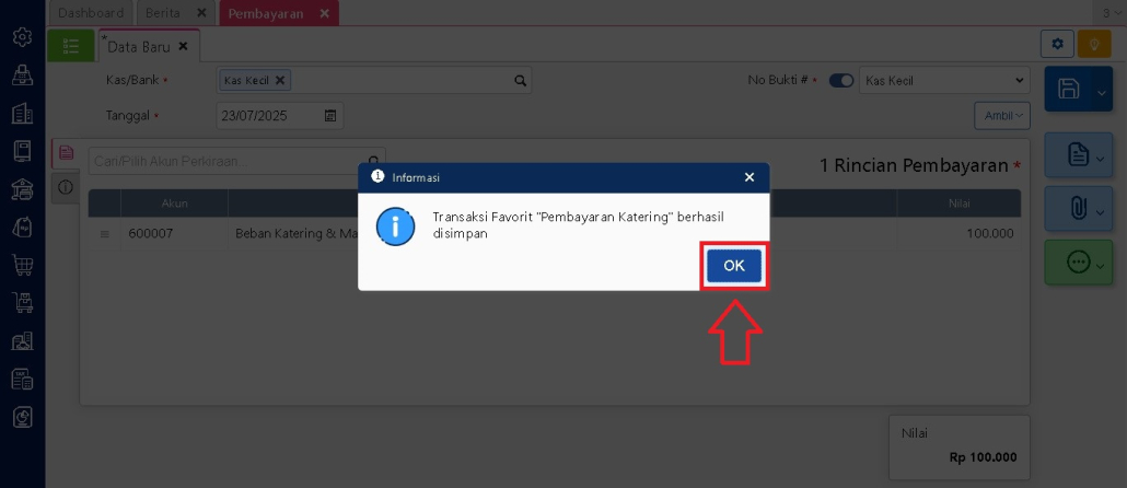 Setelah itu, pengguna dengan level operator bisa mulai menginput transaksi seperti biasa. Bedanya, transaksi yang butuh persetujuan akan otomatis disimpan dalam bentuk draft.