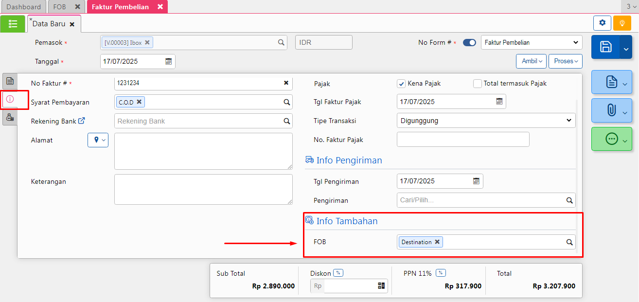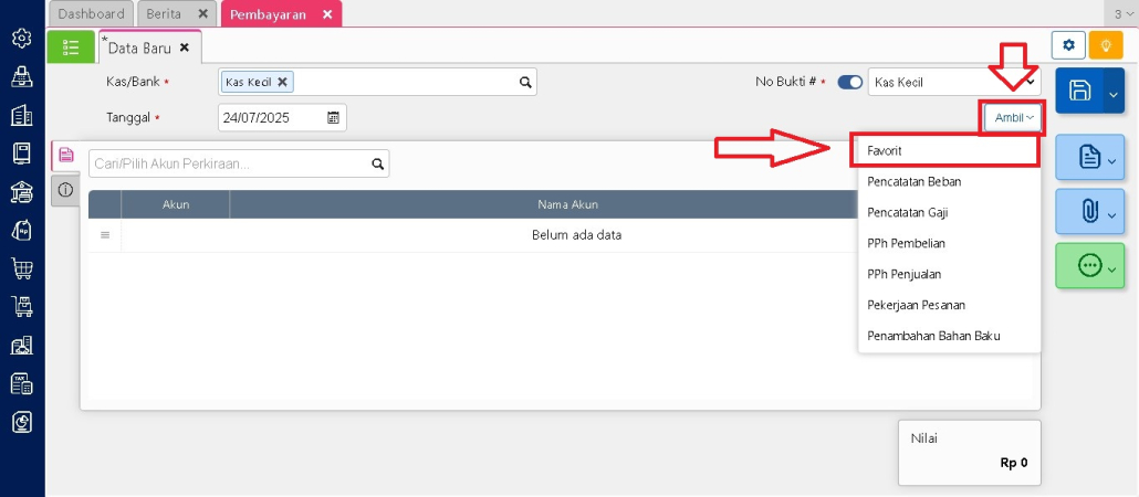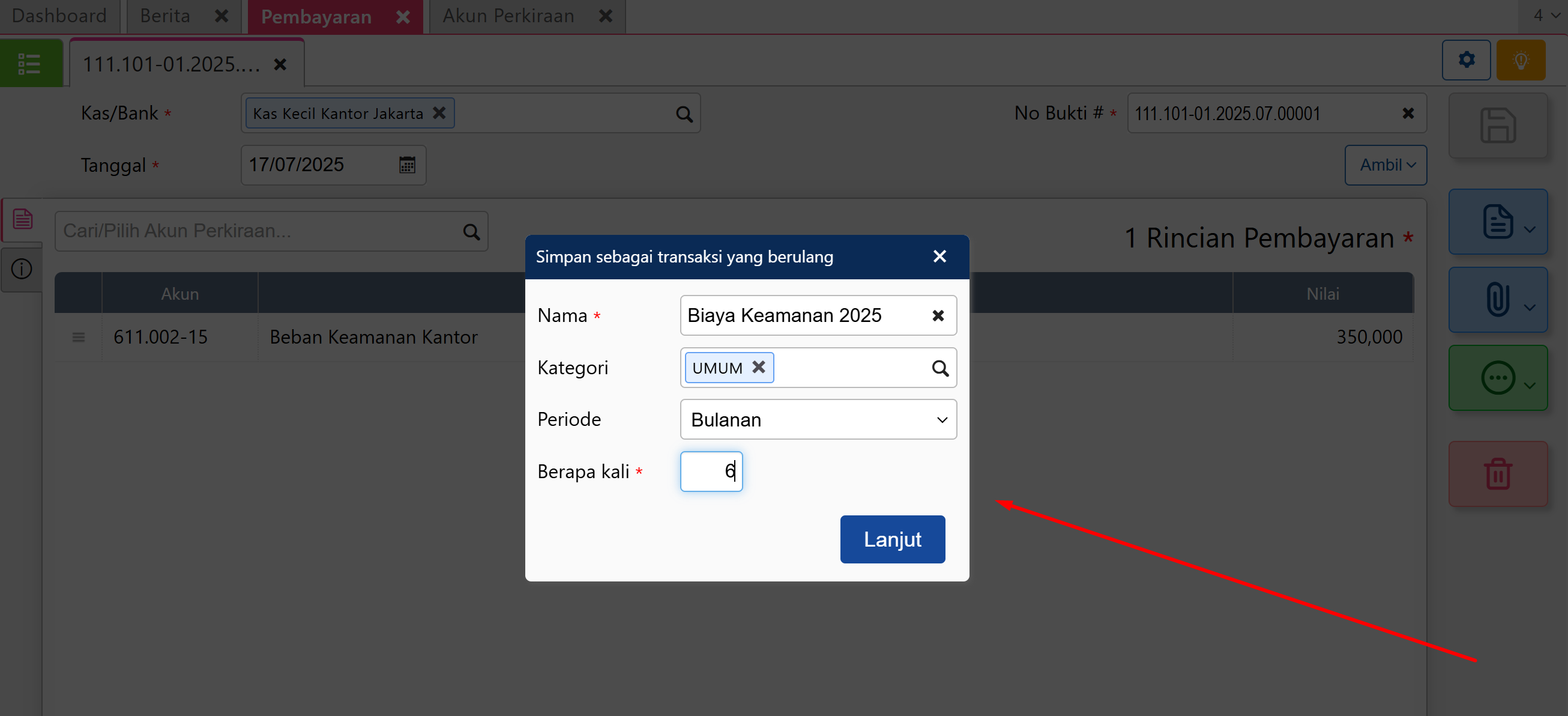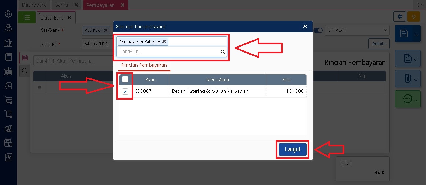 Setelah itu, pengguna dengan level operator bisa mulai menginput transaksi seperti biasa. Bedanya, transaksi yang butuh persetujuan akan otomatis disimpan dalam bentuk draft.