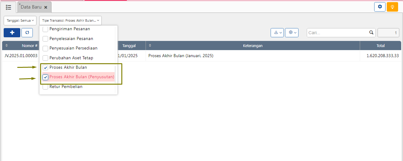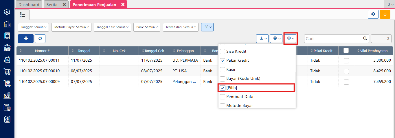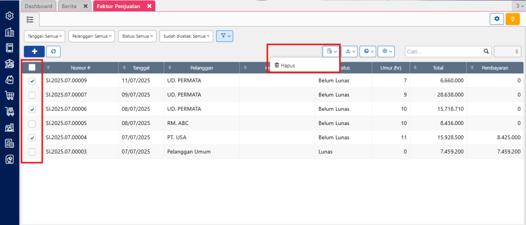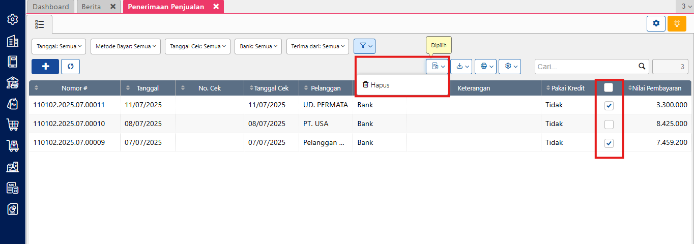 Penyetuju cukup masuk ke menu Perusahaan> Persetujuan, lalu akan muncul daftar transaksi yang menunggu persetujuan. Di sini, tinggal centang: