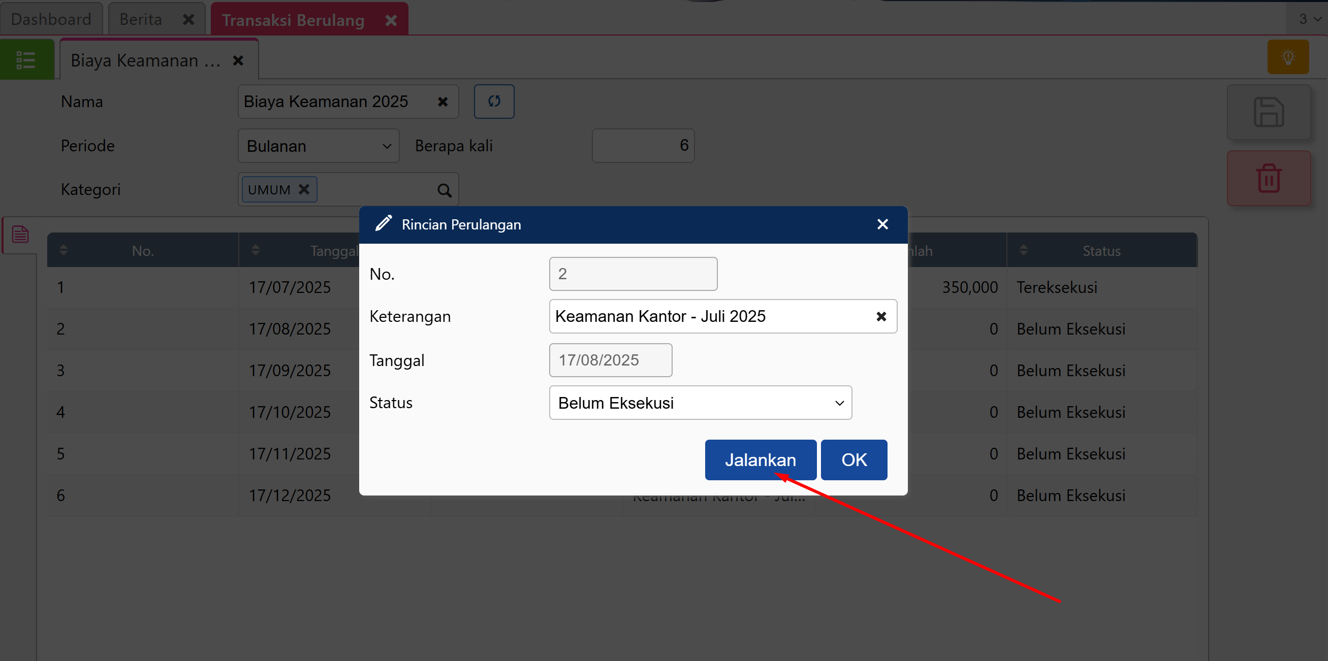 - Transaksi Ditolak: Akan muncul status ‘Ditolak’ di daftar transaksi. Anda masih bisa menghapusnya, atau jika perlu, ubah isinya lalu ajukan ulang untuk disetujui kembali.