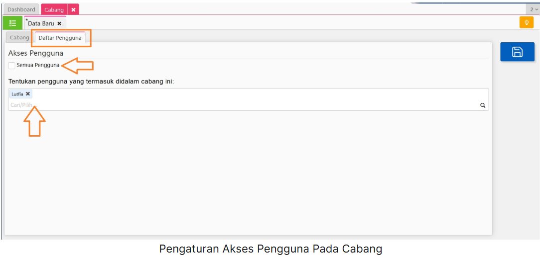 Kalau sahabat ingin hanya pengguna tertentu atau cabang tertentu yang bisa pakai penomoran ini, silahkan non aktifkan opsi “Semua Pengguna”, lalu pilih akses grup atau nama pengguna yang boleh menggunakannya.