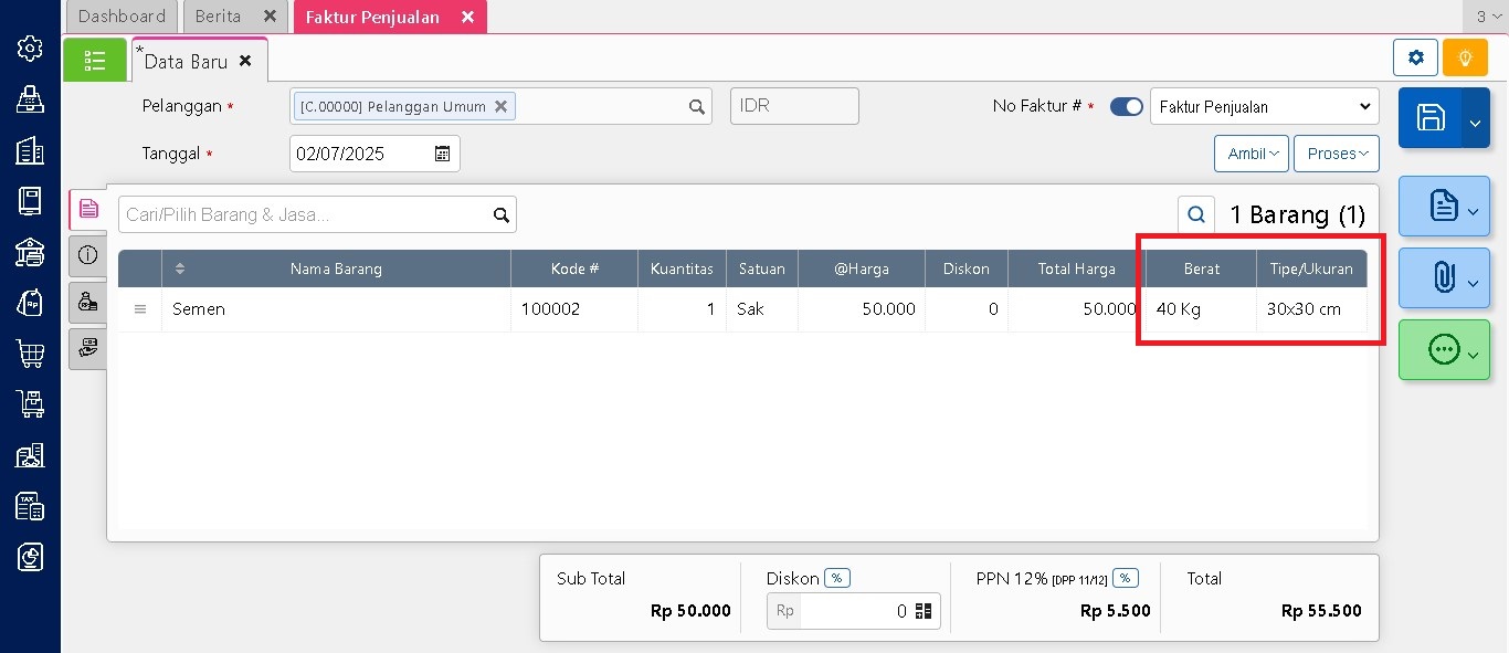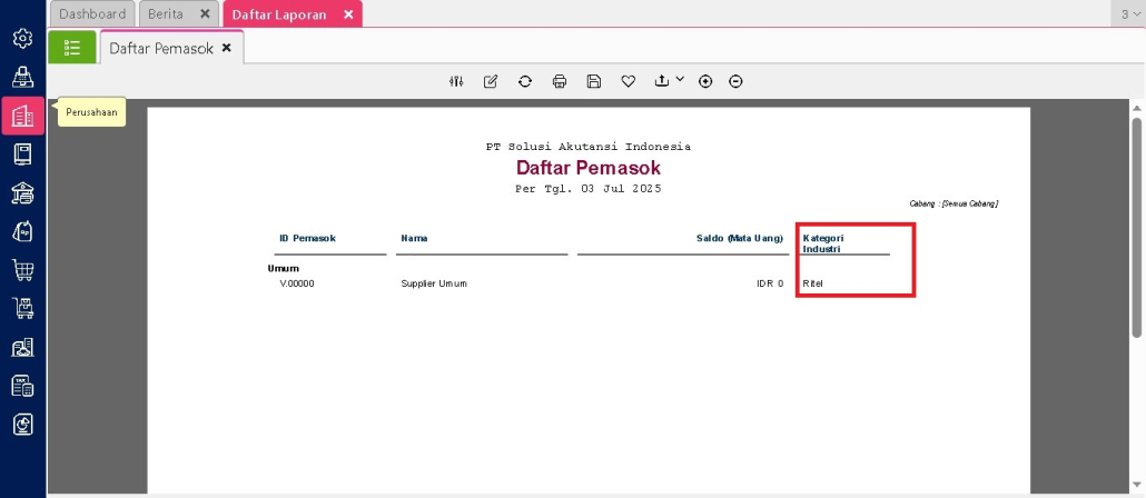 Dengan langkah ini, informasi tambahan yang telah dimasukkan akan muncul di dalam laporan. Data tersebut bisa dimanfaatkan untuk keperluan evaluasi, analisis pemasok, maupun dokumentasi internal yang lebih lengkap dan informatif.