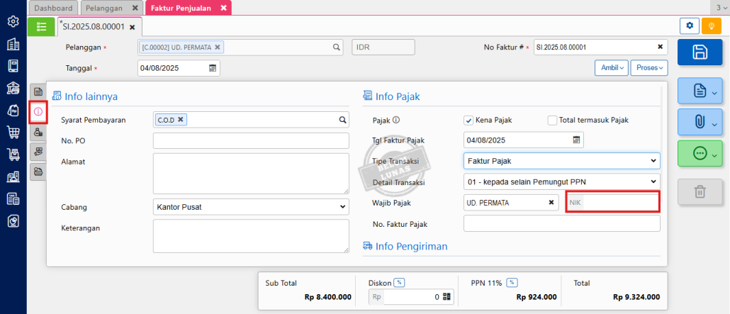 Sehingga sisa saldo tersedia setelah penjualan = 1) faktur pembelian (FP.0001) kuantitas 7 dengan total nilai adalah Rp 14.875,-.