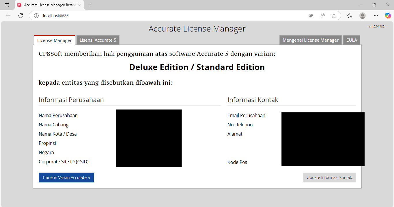 • Cari Accurate 5 Lisensi Manager (komputer server), pastikan terbuka localhost 6688.