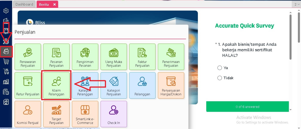 1. Masuk ke Modul Klaim Pelanggan