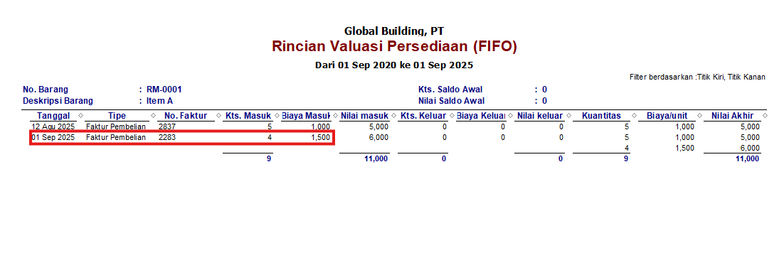 Tgl 5, beli item A sebanyak 1 pcs @ Rp. 1500