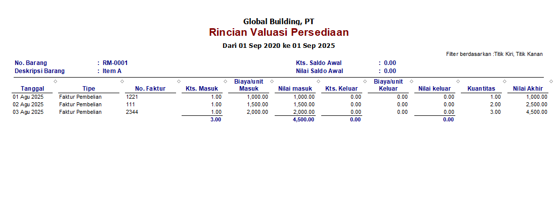 Tgl 1, beli item A sebanyak 1 pcs @ Rp. 1.000