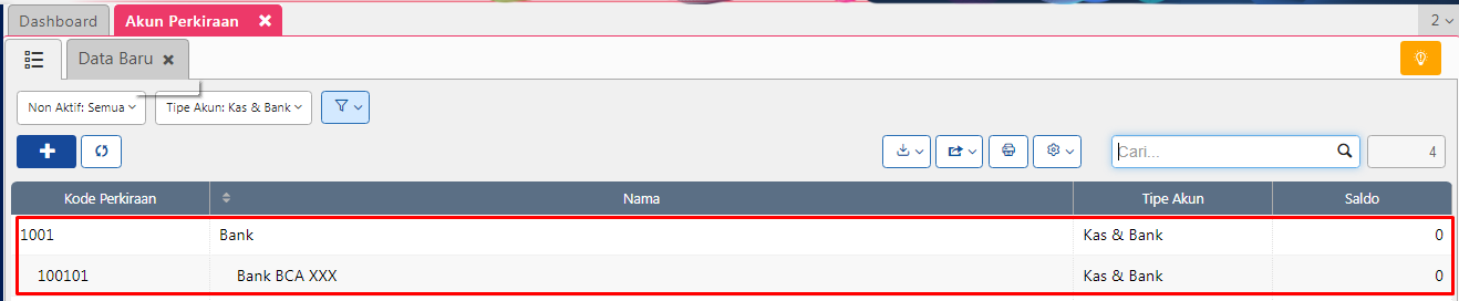 Setelah langkah di atas selesai, kamu bisa melihat perbedaan tampilannya di daftar akun perkiraan: