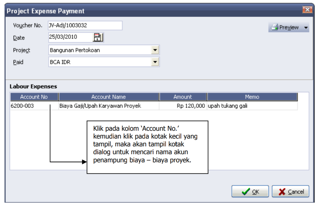 - Account No : Pilih akun biaya proyek yang dikeluarkan.