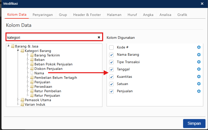 Pada accurate online anda dapat membuat laporan pejualan per kategori barang dengan cara memodifikasi laporan yang tersedia, anda dapat membuat laporan tersebut dari laporan penjualan per barang maupun laporan rincian faktur penjualan. Ikuti langkah-langkah di bawah untuk membuat laporan penjualan per kategori barang.