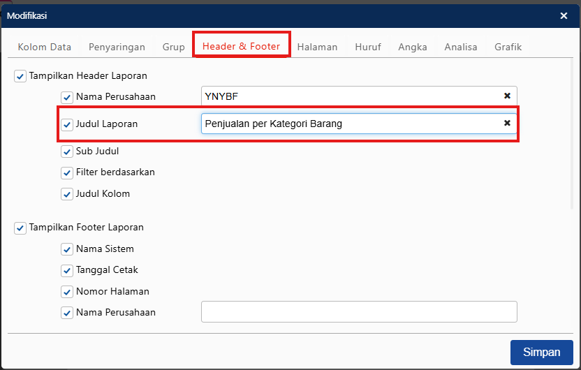 - Klik memorize untuk menyimpan format laporan supaya tidak hilang.