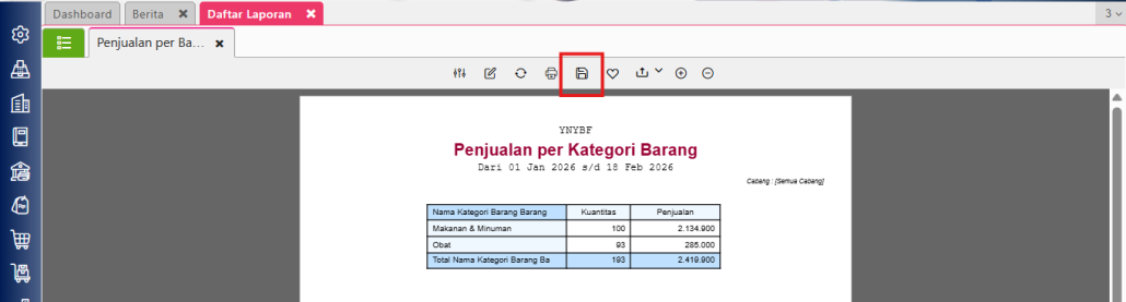 - Buka laporan penjualan > buka laporan penjualan per barang.