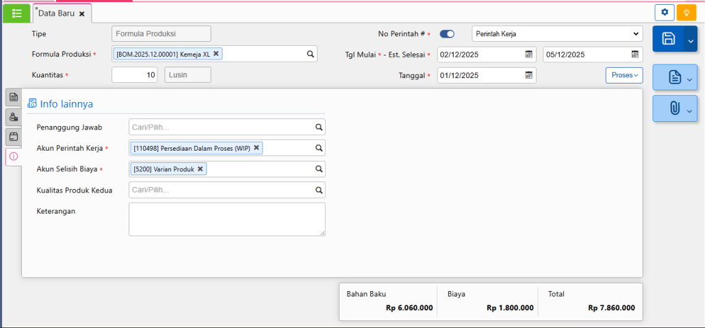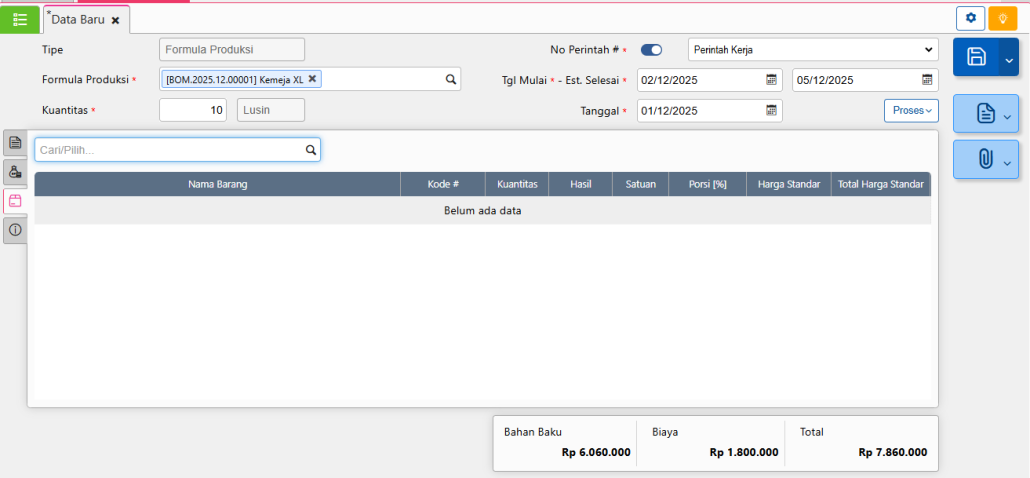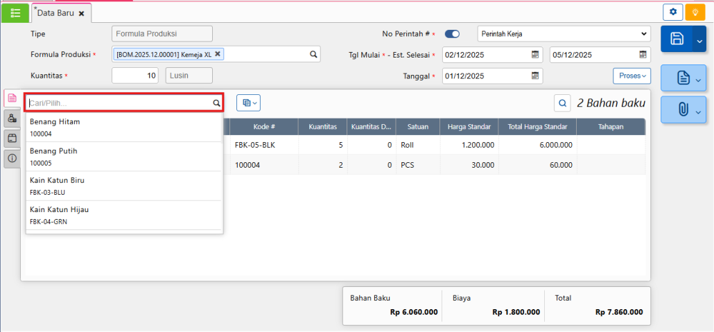 Note: Anda juga masih bisa menambahkan atau mengurangi bahan baku lain diluar dari formula, pada surat perintah kerja ini.