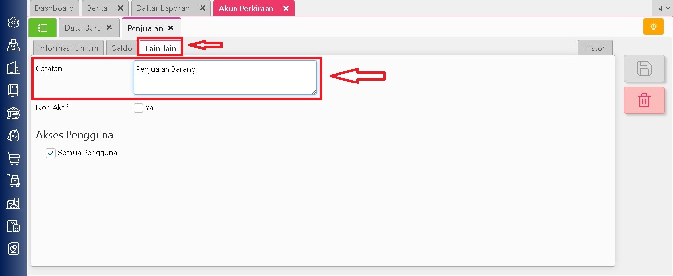 Pada Accurate Online, setiap akun perkiraan dapat diberikan catatan tambahan melalui menu Buku Besar | Akun Perkiraan. Catatan ini dapat membantu memberikan informasi atau keterangan khusus terkait akun tersebut. Selain itu, catatan akun juga dapat ditampilkan pada laporan keuangan seperti Neraca dan Laba Rugi.