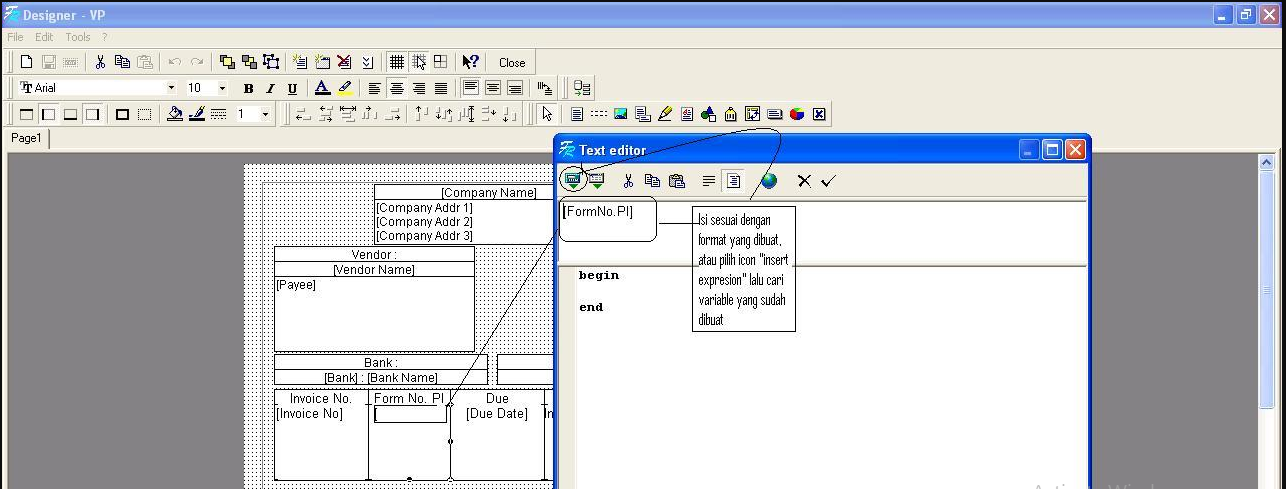 - Lalu akan muncul variable 1, silahkan bisa di ubah namanya menjadi FormNo.PI atau bebas,