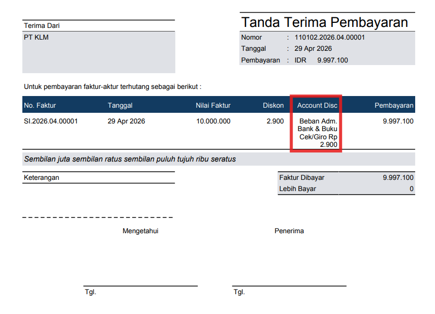Menampilkan Informasi Diskon Pada Desain Cetakan Penerimaan Penjualan