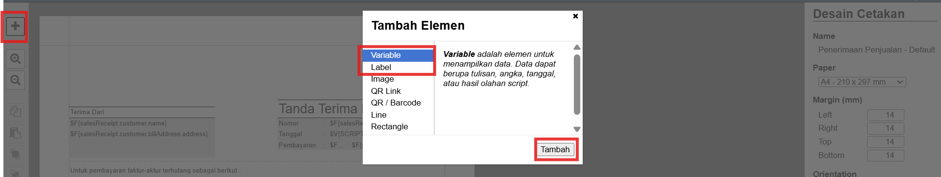 Berikut langkah-langkah untuk menampilkan informasi diskon pada desain cetakan penerimaan penjualan di Accurate Online: