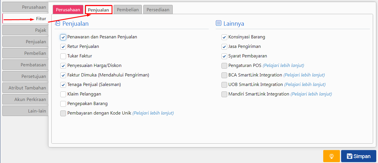 Bagian ini cocok buat kamu yang sering melakukan transaksi penjualan. Di sini kamu bisa aktifkan fitur seperti: