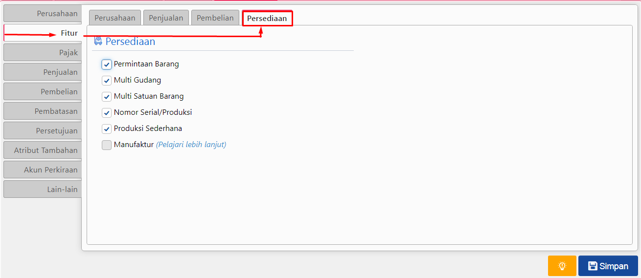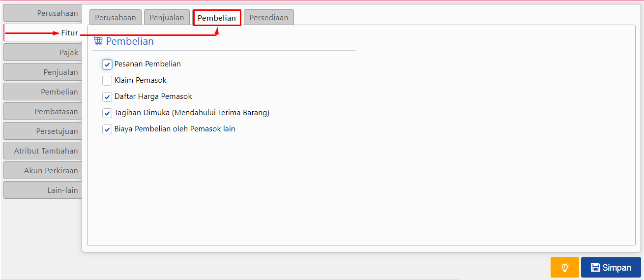 Kalau kamu sering berurusan dengan vendor atau pembelian barang, bagian ini wajib kamu cek. Fitur – fitur yang bisa kamu aktifkan antara lain: