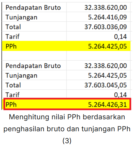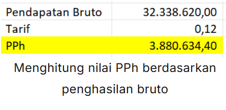 - Tahap 1 : Menghitung nilai PPh berdasarkan penghasilan bruto: