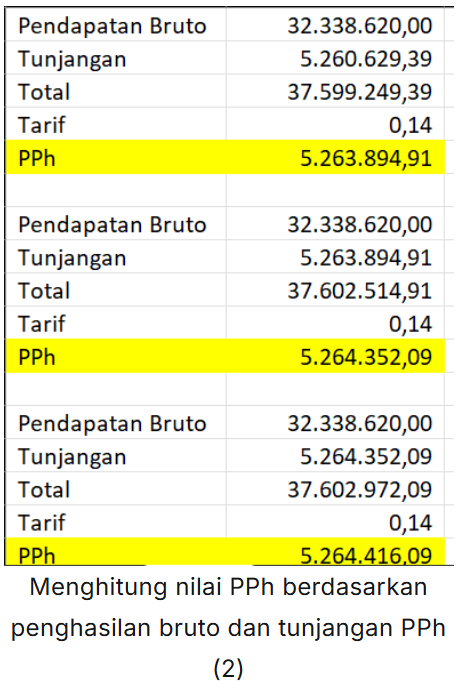 - Tahap 2 : Menghitung nilai PPh berdasarkan penghasilan bruto dan tunjangan PPh