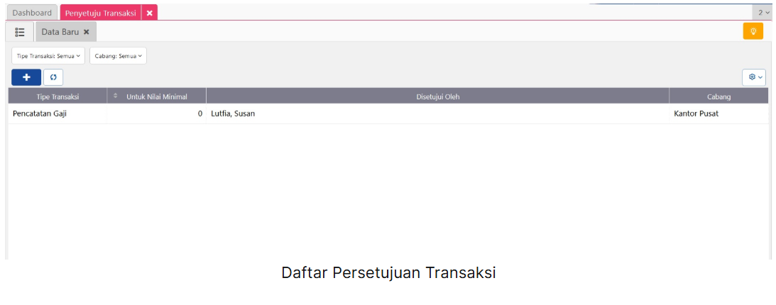 Fitur Penyetuju Transaksi memungkinkan Anda mengatur siapa saja yang perlu menyetujui transaksi tertentu di sistem Anda. Fitur ini sangat berguna untuk menjaga kontrol dan memastikan transaksi berjalan sesuai aturan internal perusahaan.