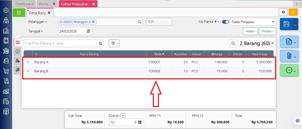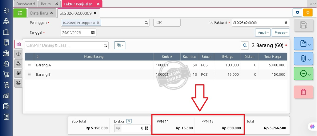 - Hasil akhir PPN yang dikenakan akan sesuai dengan masing masing persentase pada settingan PPN yang dilakukan.