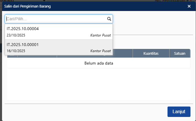 - Pilih nomor pemindahan nya, lalu klik lanjut.